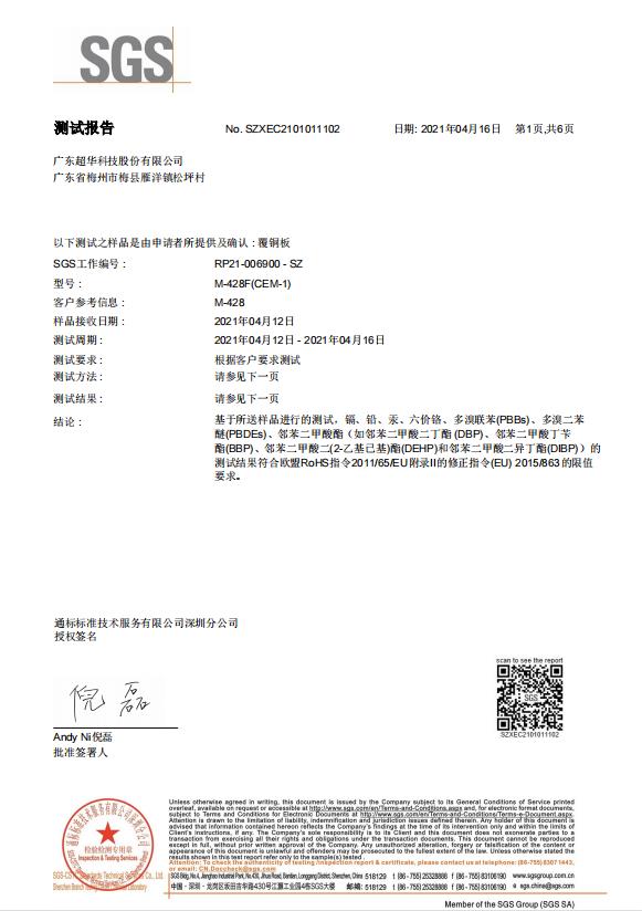 CCL RoHS -- 廣東超華科技股份有限公司