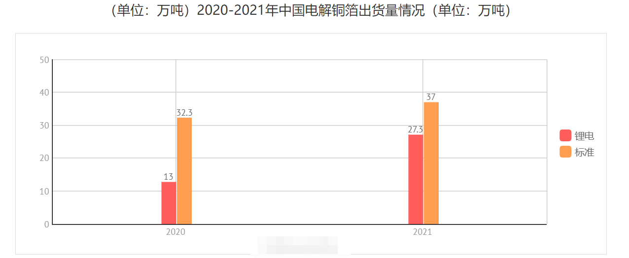 2021年受益于國內新能源汽車(chē)銷(xiāo)量大幅增長(cháng)帶動(dòng),動(dòng)力電池出貨量大增,中國電解銅箔行業(yè)持續保持較高的增長(cháng)態(tài)勢。